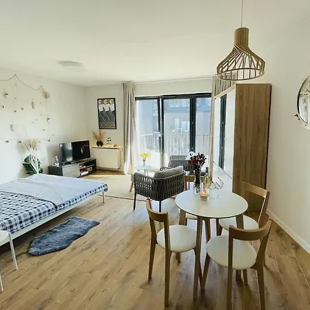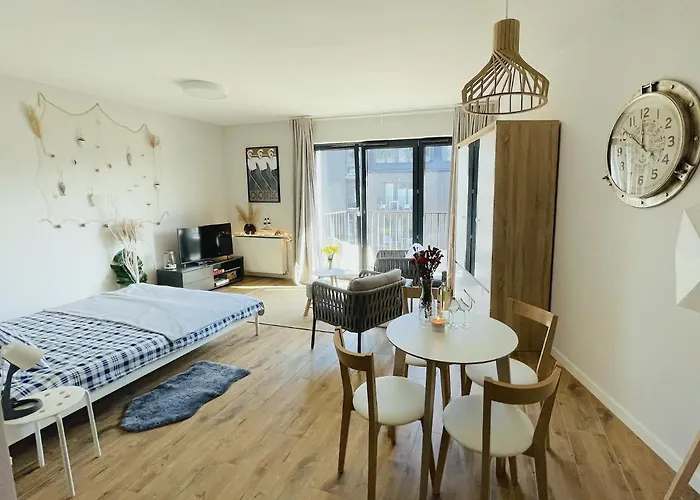 Apartament Morski Keja I Kolobrzeg Podczele med 1 sovrum, som ligger i Kołobrzeg 4 km från Bastion, erbjuder spafaciliteter som solarium, bubbelpool och bastu. Cirka 15 minuters bilresa från den 38 m² stora lägenheten hittar du Polska armémuseet.